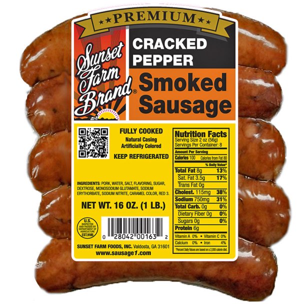 Sunset Farm Foods Cracked Pepper Smoked Sausage 1 Lb Walmart Com